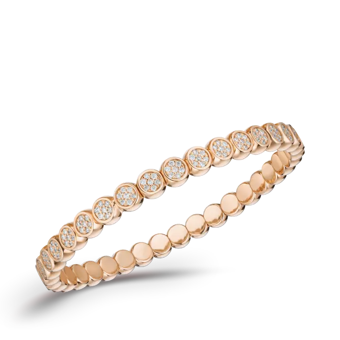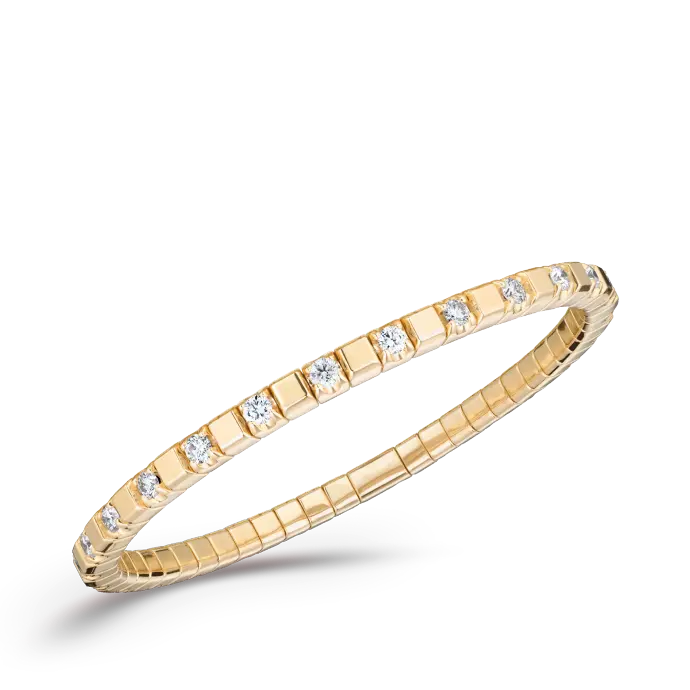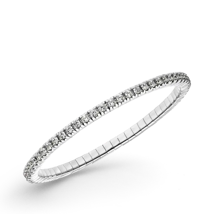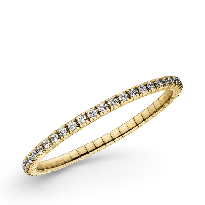 De diamanten zijn gezet in kostbaar goud en zijn met elkaar verbonden door gelijkmatige en flexibele schakels. Elegant en praktisch tegelijk, de stretcharmbanden zijn gemakkelijk aan en uit te trekken en beloven het hoogste draagcomfort. Dit wordt mogelijk gemaakt door het gepatenteerde FLEX-SYSTEEM.